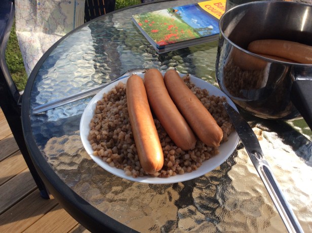 I was quite early in Vaikininkai. I went to the shop first to buy sausages, kefir, some other milk product with linseeds and berries and cheese. I had mailed the campsite, so they knew I was coming. There was a lady waiting on the terrace of a house next to the campsite. Some Russian-language excercise again, as she didn’t speak English, but I’m getting used to it again. I heard the Bonacamping was opened just recently. It is quite small, but cozy and comfortable. As I’m writing this post, there are no other clients, so the all place is mine.