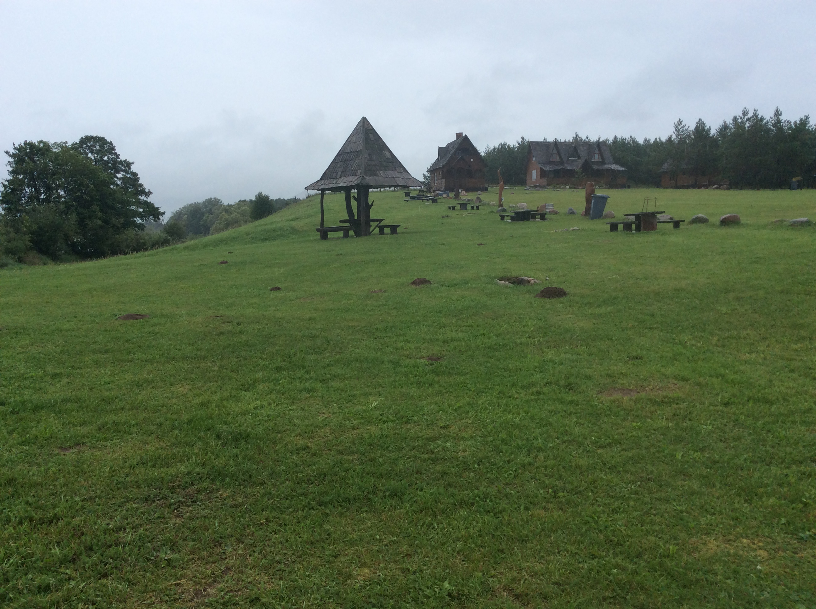 Sakiai was not too inspiring either, but I made a stop at the shop and bought myself bean and smoked chicken sallad and exceptionally one beer. I was cold and I knew that as I was about to turn west, it would be head wind. And so it was. I had a stop somewhere by a pond, ate the sallad but left the beer after all. Then I continued and it was some more rain.