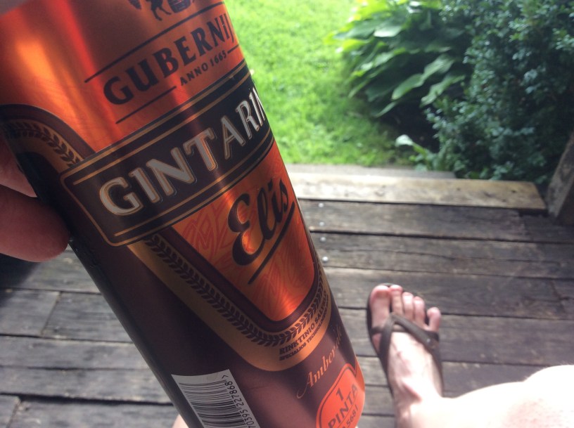 But then I had a glimpse of cyclist’s luck. Few kilometers before Jurbarkas, the sun came out. And as I rode into the town, I spotted a camping sign at the roadside: Jurbarkas B&B might have a camping, too. So I went to ask. And yes, they have a garden where it’s possible to put up a tent. The old couple running the place were absolutely charming and very helpful. I took out my wet tent, put it to dry and opened my beer. I felt so lucky and happy. After the showet and laundry, I went to buy some food and cooked a dinner with buckwheat and canned turkey (Lithuanian, not so good). It was nice and quiet and I slept well.